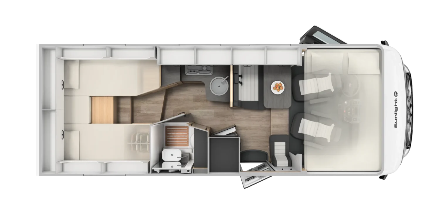 Nabízíme vám pronájem obytného vozu Sunlight I 67 S Adventure Edition, nově pořízeného v roce 2025 pro stylové a pohodlné cestování 4 osob (4 sedačky s pásy, 4 + 2 děti spaní na rozkládacím lůžku). Tento luxusní celoročně využitelný sedmimetrový integrovaný vůz má 180 PS, extra zimní výbavu, izolované nádrže, vyhřívanou zadní část podlahy, vyhřívaná zrcátka a další vychytávky. Nechybí samozřejmě WC a sprcha, nebo podélné postele vzadu s možností posuvného středového dílu mezi nimi. Spaní je tedy možno v kofiguraci 4dospělí+2x dítě.